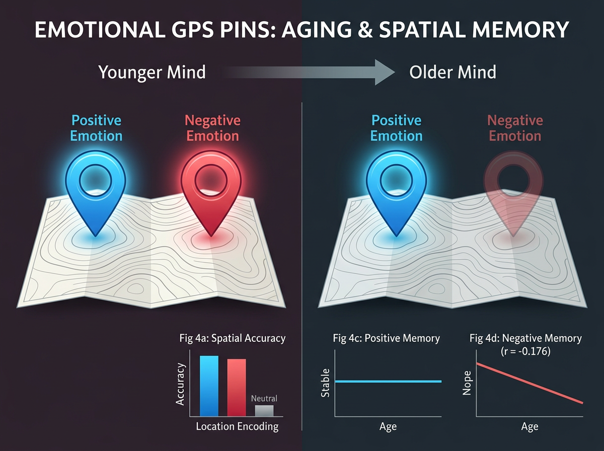 한편, 감정이 'GPS 핀'처럼 작용했던 위치 기억에서도 나이에 따른 변화가 뚜렷했습니다. 젊은 층에서 강렬한 감정이 위치 기억력을 크게 향상시키는 효과가 노년층에서는 현저히 감소하게 됩니다. 결국 나이가 들면서 감정은 기억의 특정 조각(전경)을 붙잡는 데는 여전히 영향을 미치지만, 그 조각을 전체적인 맥락(배경)이나 특정 장소(위치)에 단단히 고정하는 힘은 점차 잃어가는 것입니다.